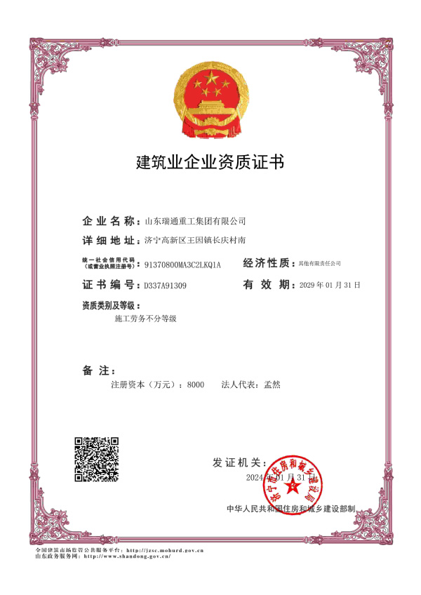 山東瑞通重工集團(tuán)有限公司,位于文化底蘊豐厚的孔孟之鄉(xiāng)的山東濟(jì)寧國家高新技術(shù)開發(fā)區(qū),公司成立于2015年,占地面積50000平方米,從業(yè)人員300余名,是一家專注于鋼結(jié)構(gòu)建筑工程的一體化解決方案服務(wù)商,公司近年來榮獲多項鋼結(jié)構(gòu)工程總承包資質(zhì),專業(yè)承包資質(zhì),國家高新技術(shù)企業(yè),省市級信用企業(yè),鋼結(jié)構(gòu)工程金獎及多項鋼結(jié)構(gòu)制造施工專利證書...